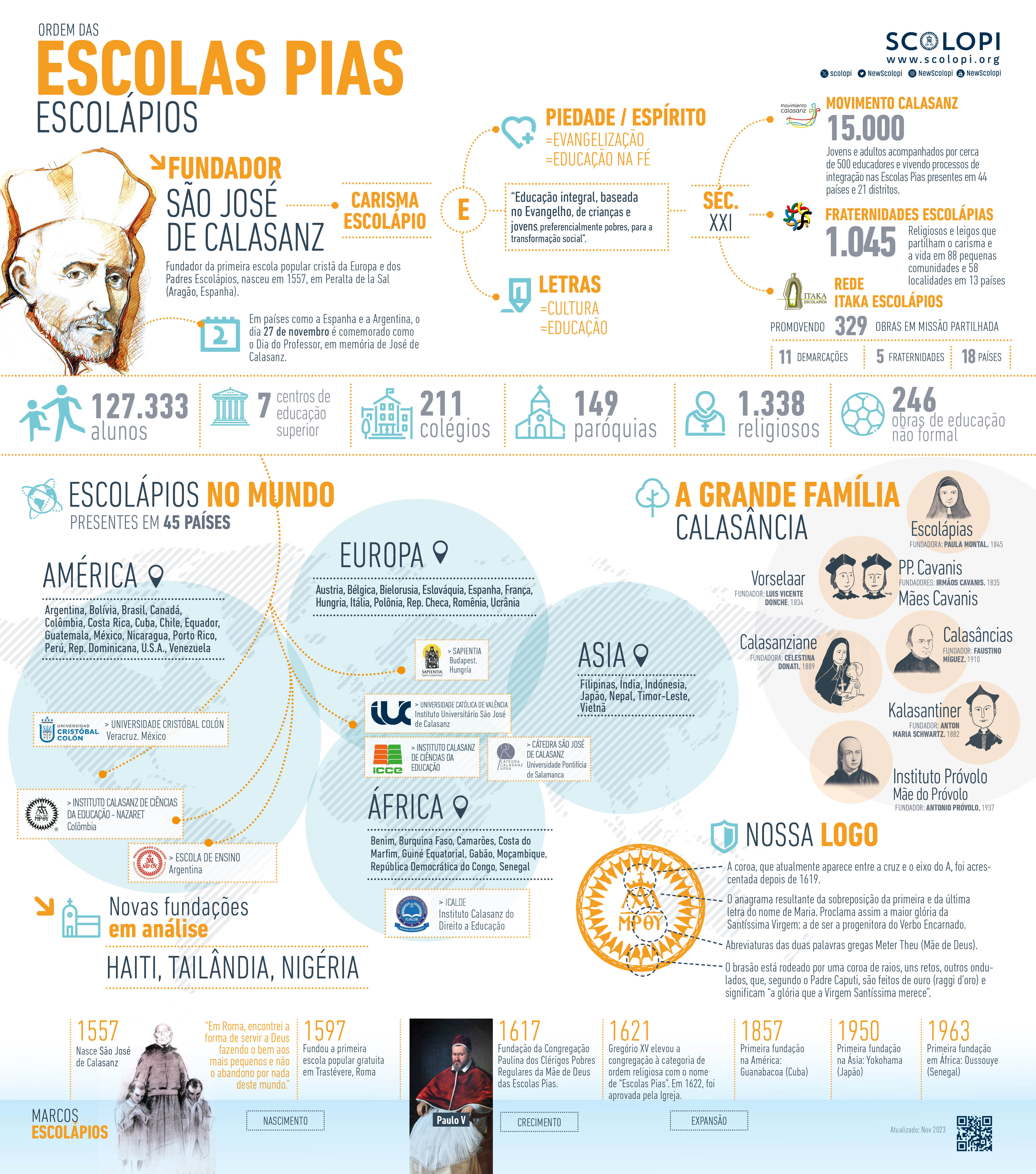 Somos uma Ordem Religiosa fundada no século XVII por S. José de Calasanz (1557-1648) e dedicada a evangelizar as crianças, preferencialmente os pobres, através da educação, razão pela qual nos consagramos com um quarto voto especial.
